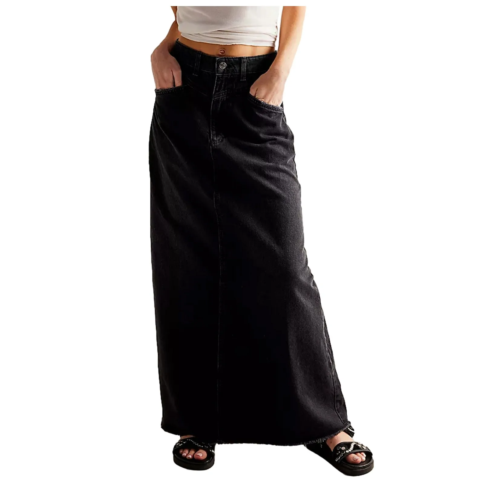 【Long Jean Skirt for Women】Black denim jean skirt for women/ casual high waist denim a-line skirt/ style maxi long jean skirt for women/ distressed cut maxi denim skirt for women/ lightweight jean skirt long/ summer light blue jean skirt plus size/ 2024 trendy denim skirt for women